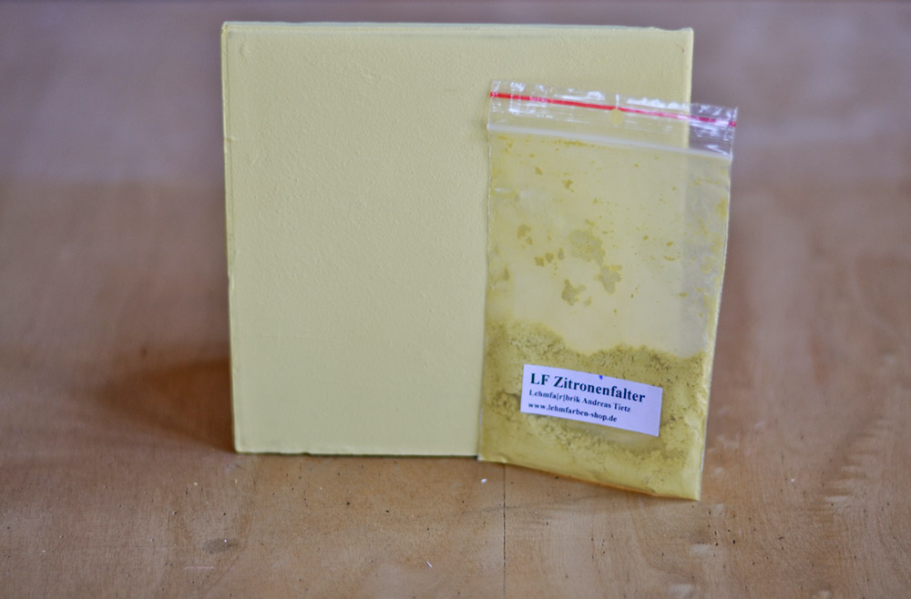 Sie erhalten unseren Lehmstreichputz "Zitronenfalter" in Pulverform.